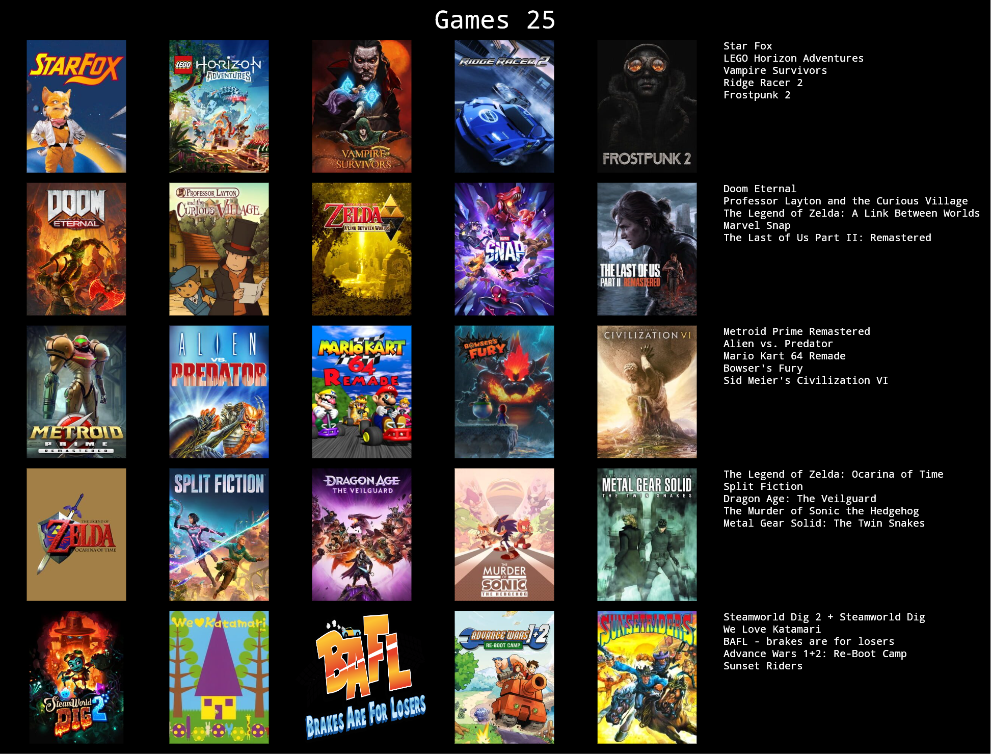 Last year (2024), I set myself a challenge to watch/play/listen/read 24 Films, Tv Shows, Games, Albums and Books.