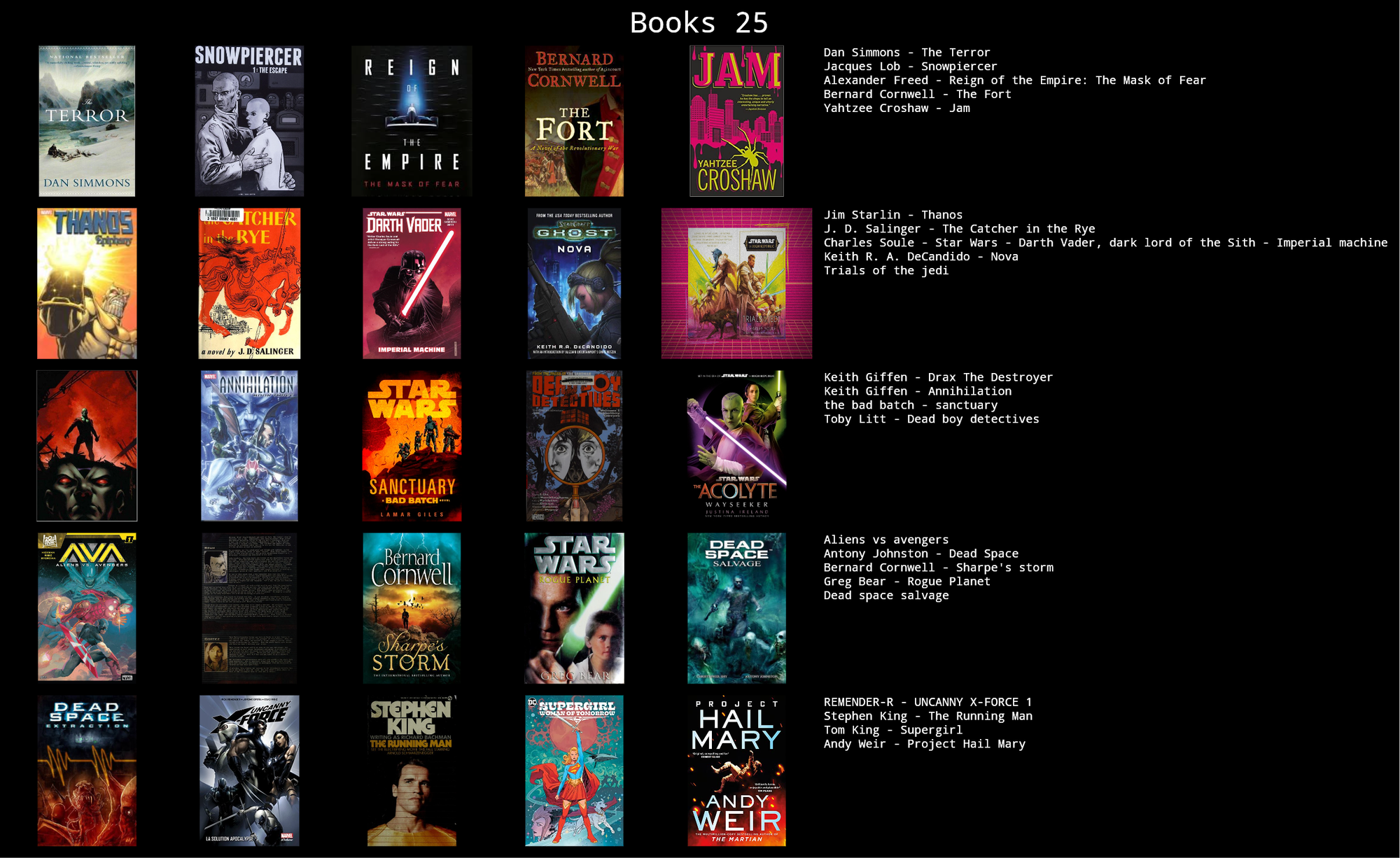 These were all new rather than rewatches/replays as much as possible, slightly cheating by having comics and books in the same category.